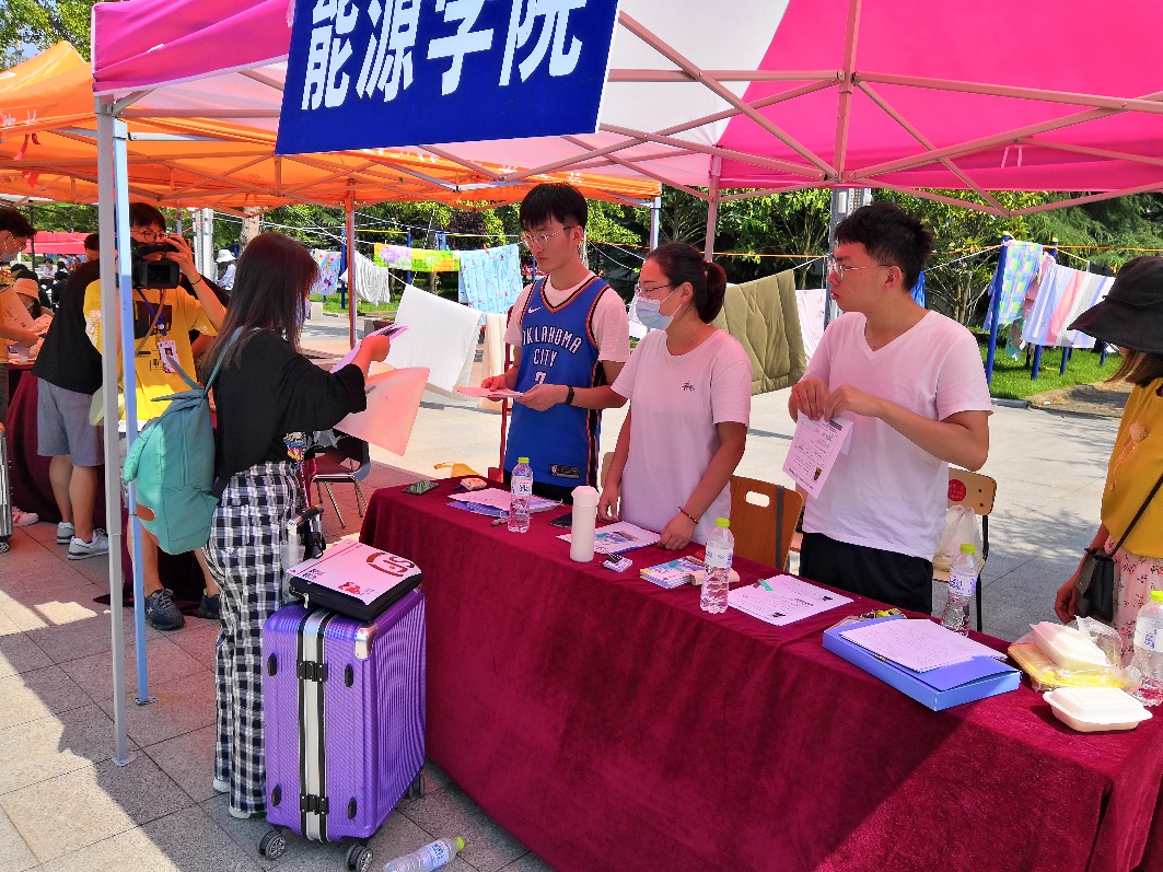 学院研究生迎新现场共设立三个报到点,分别是J4学院楼报到点、C17宿舍楼报到点和尤洛卡广场报到点。迎新当天,志愿者们工作热情、服务周到,帮助新同学指引路线、搬运行李、解答疑惑,并为他们积极科普学校、学院近些年涌现出的优秀人物事迹,助力研究生迎新工作顺利完成。
