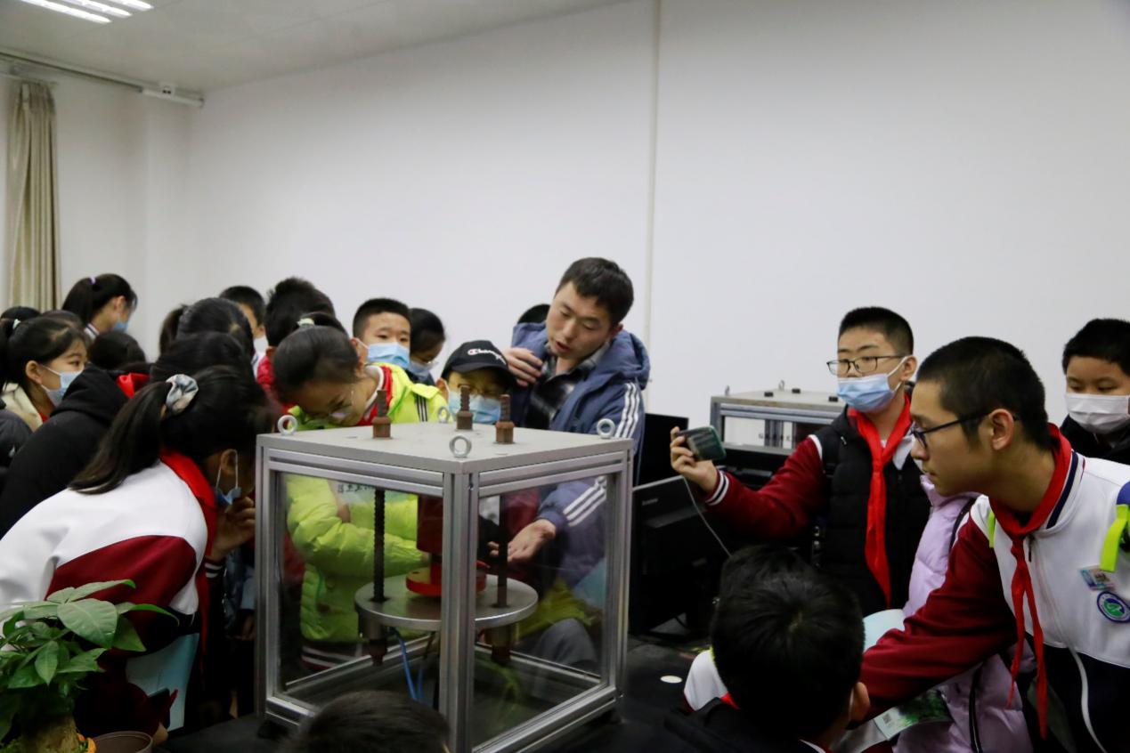 12月6日,青岛市经济技术开发区第四中学719班50余名师生来金沙js4399首页参观专业实验室,了解实验现象,学习相关实验操作流程。金沙js4399首页力学系教师陈俊国带队引导。