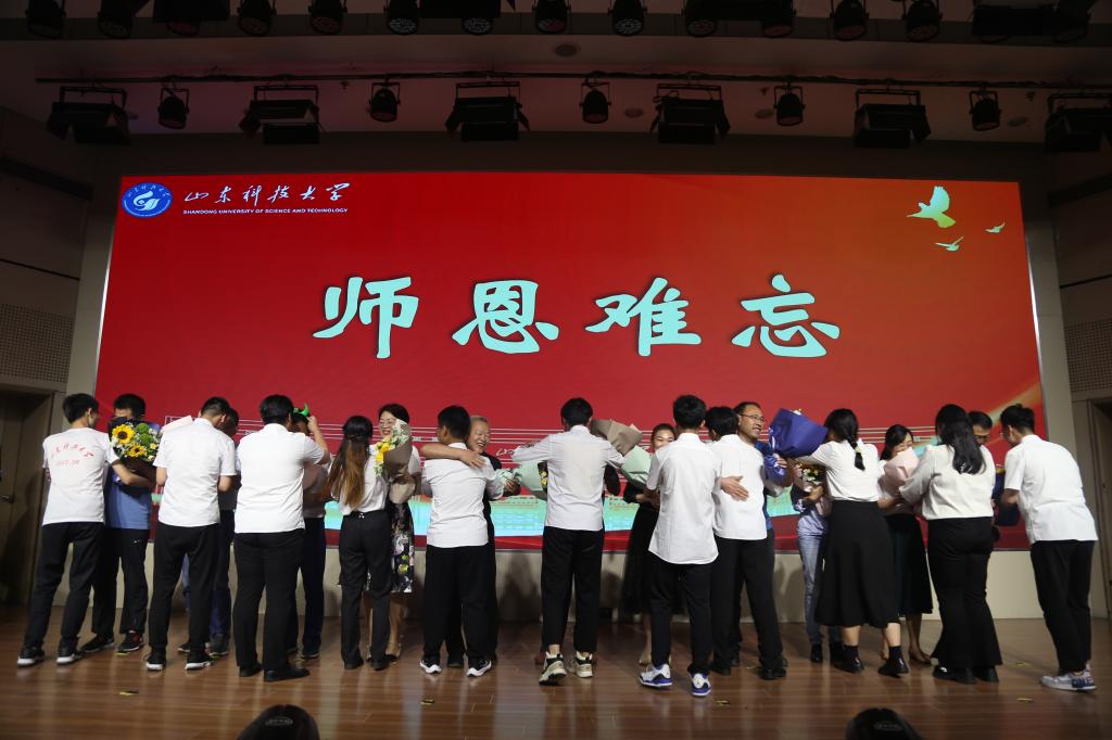 在“师恩难忘”环节,师生代表互相赠送礼物,毕业生代表手捧花束走上舞台献给敬爱的老师,表达深深的感恩之情。教师代表共同为2022届毕业生代表送上美好的祝福。学院为同学们精心准备的毕业纪念品是一枚印刻专属个人姓名、学号的“戒指”,映衬出他们在老师心目中独一无二的位置,昔日稚嫩的少年已经成长,能源人的傲骨在胸中激荡,希望同学们永远保持能源学子的优良传统和优秀品质,带上山东科技大学“惟真求新”的校训,以“海纳百川”的气量,包容谦让,甘于奉献,心怀感恩,关爱他人,以高远眼界赢得长远发展。