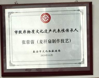 张蓉蓉是非物质文化遗产麦秸扇的第四代传承人,2017年一次偶然的机会她通过电商平台卖出了第一把麦秸扇。2018年,她成立了新泰市羊流镇双宇工艺品加工厂,开启了带领周围村民奔小康的征程。