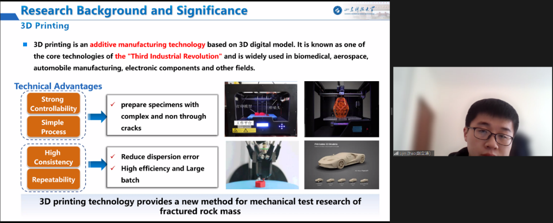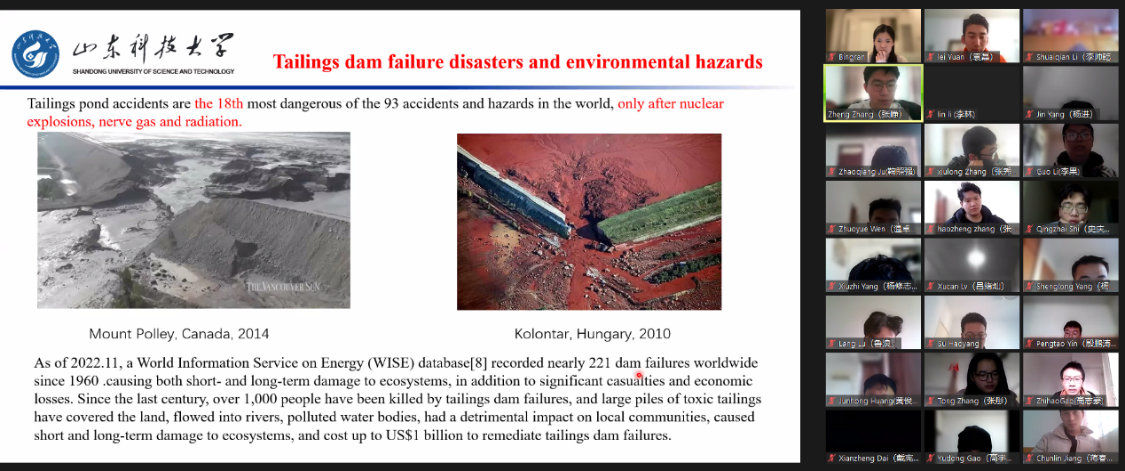 Corby Anderson深入浅出地为同学们讲解了关于矿物开采及加工的基础知识和发展前沿,从采矿及矿物加工工程的发展历史和基本概念出发,详细介绍了矿物开采方式及选矿工程设计相关基础知识和矿物回收和环境保护等工艺设计及发展历程,为积极鼓励学生“开口讲,动脑想,用心问”,本课程临近尾声时开展了为期两课时的结业汇报,围绕3D打印、声发射技术及尾矿库灾害等进行汇报交流。最后Corby Anderson对矿山采选冶产业现状进行总结,并解析展望采矿业未来发展方向。