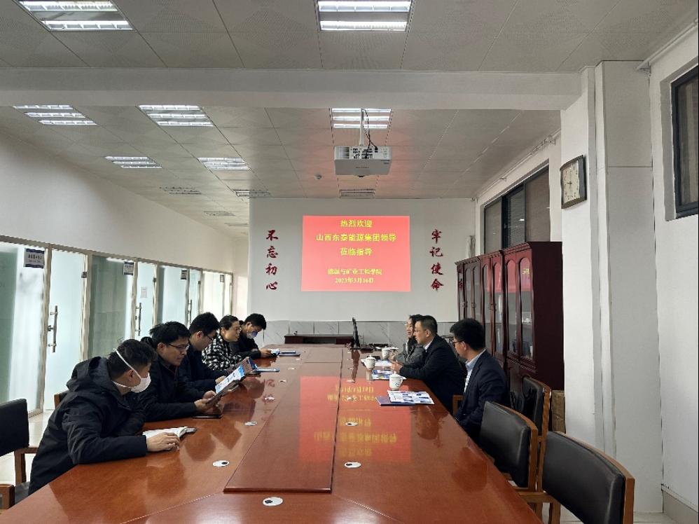 为深化校企合作,扎实推进金沙js4399首页2023届毕业生就业工作,3月16日,山西东泰能源集团副总经理毛建武、人力资源部李亚平、刘亚飞一行到访学院,并开展校企交流座谈会。学院党委副书记兼副院长许琳、资源工程系主任李杨杨、团委书记周尚涛、毕业生辅导员宗彩建和王振浩出席会议。